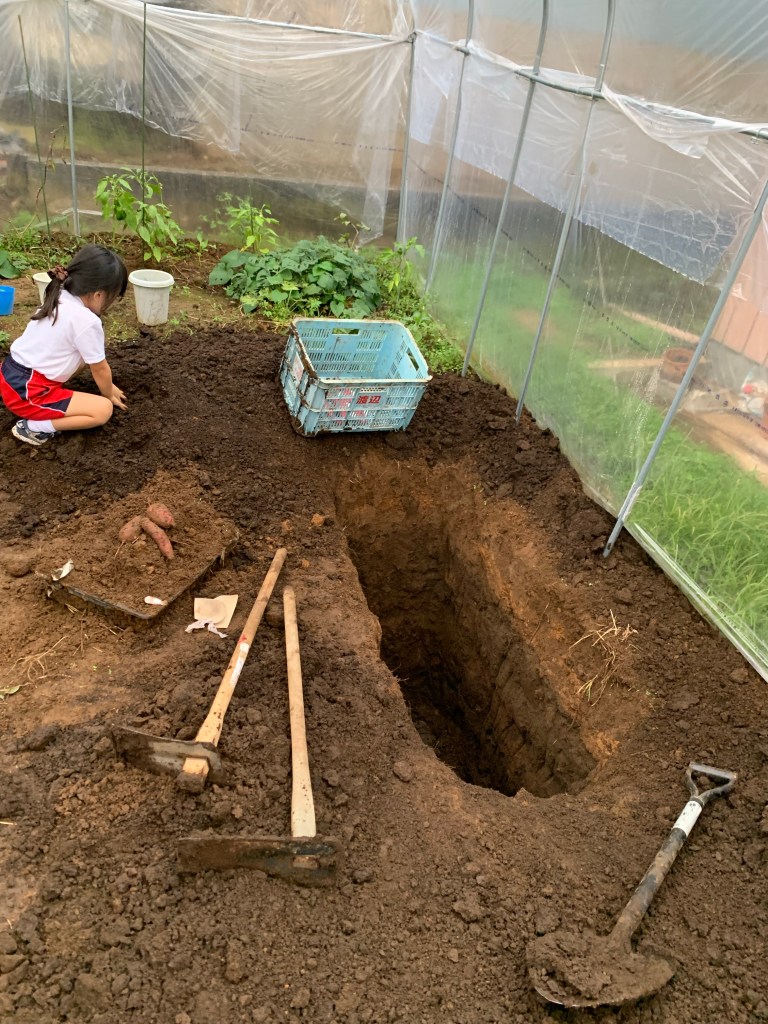 ということで、お芋の貯蔵庫を作成すべくひたすら穴を掘ります。