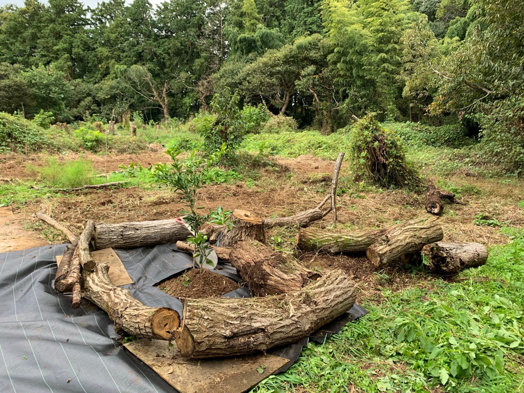 防草シートを敷くので大丈夫だと思いますが、このサイズの木ならなお安心。重いのだと明らかに100キロ以上ありますが丸ごと担ぎ上げるわけじゃないんでなんとかなります。